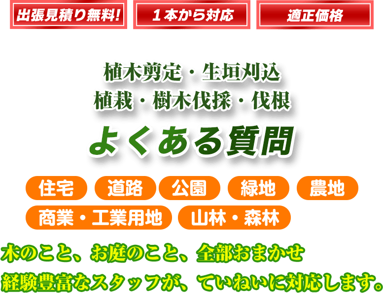 大木や高木の伐採は、正確なお見積りが必要になりますので、まずはお気軽にお電話でご相談くださいね。